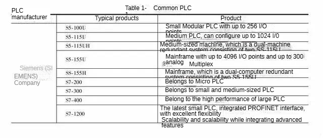 Common PLCs are shown in the table.
